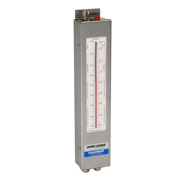 Visually displays tank level. Used with bubblers or pneumatic tank sensors that produce a pressure output signal, provides local or remote tank level indication. Uses the Hydrostatic Manometer Principle to provide high accuracy. Custom calibrated scale permits direct reading in units of volume, weight or depth. All pneumatic operation eliminates any need for additional intrinsic safety provisions.
