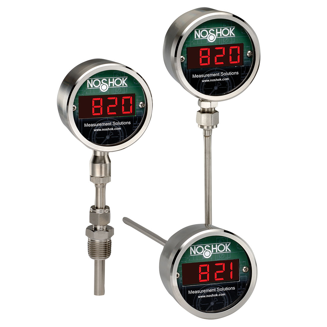 Utilizes PT1000 technology for continuous temperature monitoring, electronic temperature switching, and transmission of analog output while providing local digital indication. Allows for one or two switching outputs as well as optional current and voltage outputs. A variety of stem lengths are available - also available with adjustable insertion lengths via the sliding compression fitting. RoHS compliant.