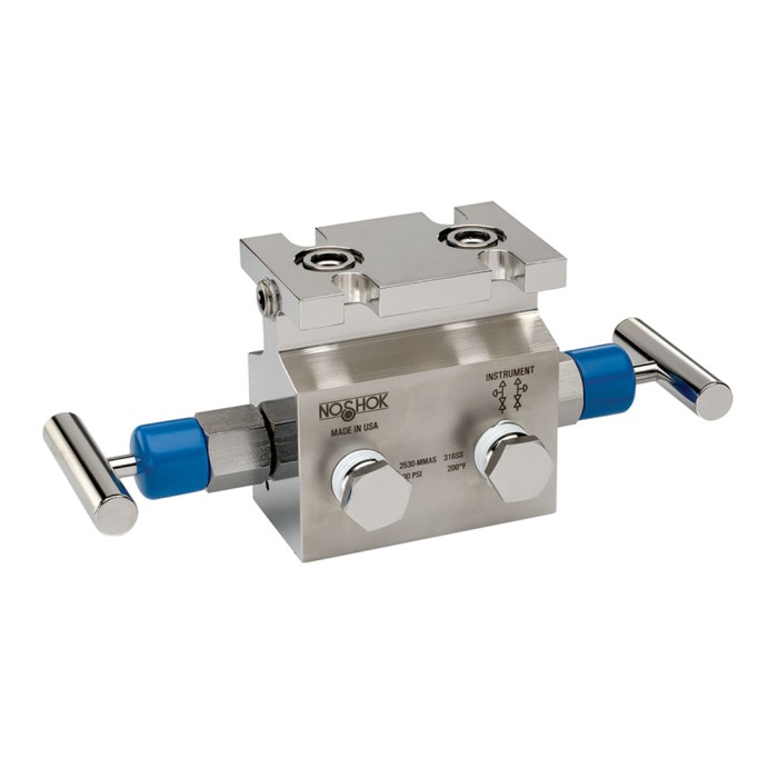 Designed for use with differential pressure transmitters incorporating two isolation valves in natural gas applications. Soft seat and non-rotating stem tip standard on large bore isolation valves. 100% helium leak tested to 1 x 10-4 ml/s for performance and reliability. Rod out ports and drain ports are standard on the 90° angle design